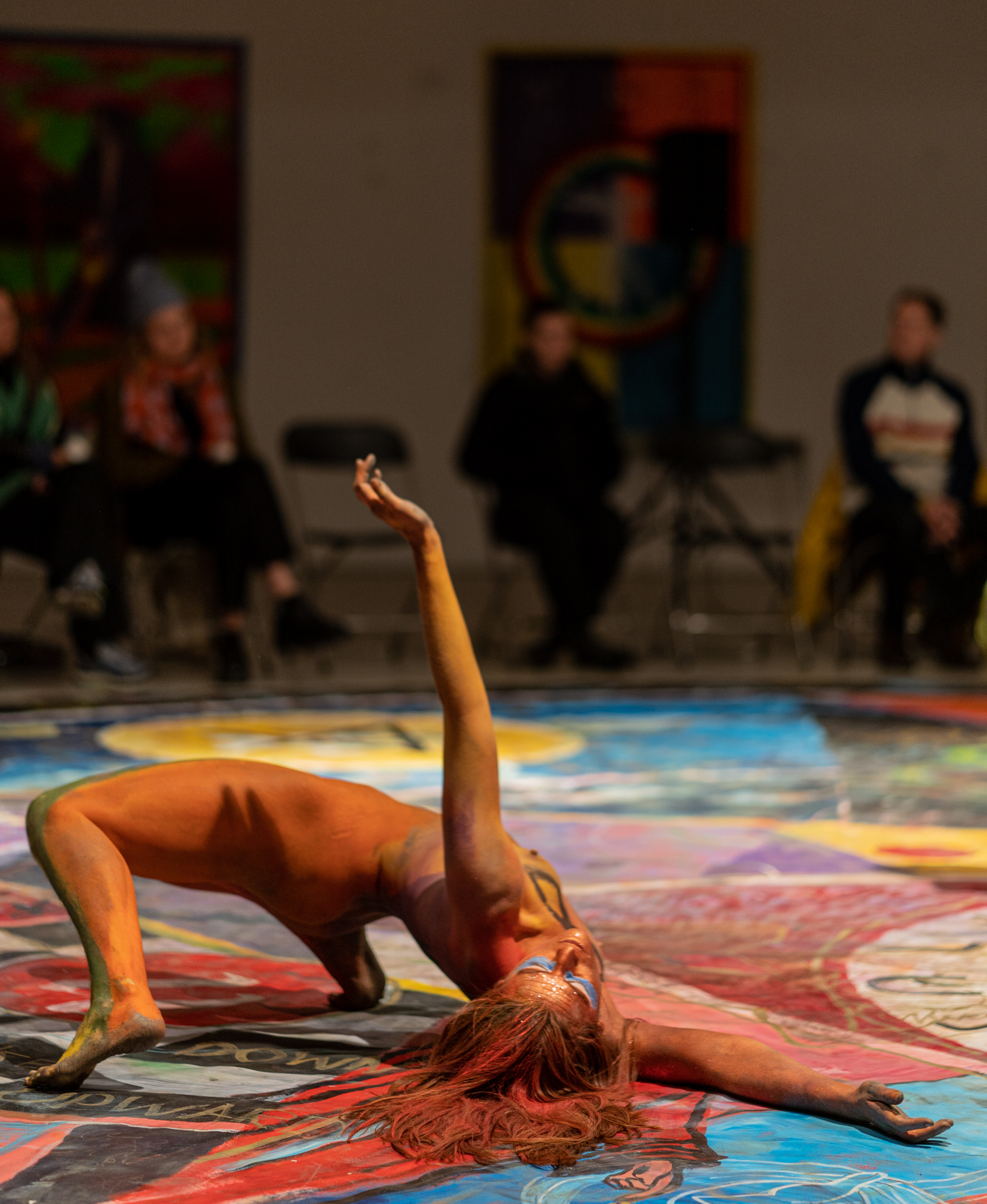 THE ALTERNATION PROJECT COLLECTIVE includes Julia Kiryanova (Paintings, tapestry, body designs and concept), Lee Ellickson (mise en scene and concept), Elizaveta Kuzyakova (sound score and performance), Reon Cordova (film compilation), Simone Goslinga (dramaturgy), and performers Antti Uimonen, Lisa Hofmann, Laura Klinkenberg, Tinka Charmant, Eva van der Zand and Mova BoRee Aske